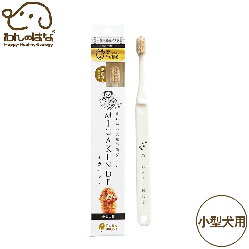 柔らかい天然毛歯ブラシ ミガケンデ 柔らかいヤギ植毛 小型犬用 1本