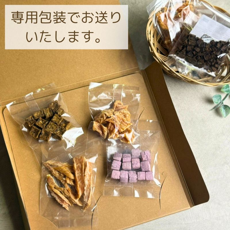 ※ミニおやつはわんのはなスタッフセレクトです。 ※パッケージは2種類ご用意しておりますので、ラッピングが異なる場合がございます。
