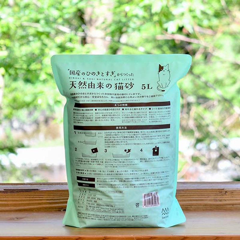 ひのきにすぎを程よくブレンドしてつくった天然由来の猫砂です。