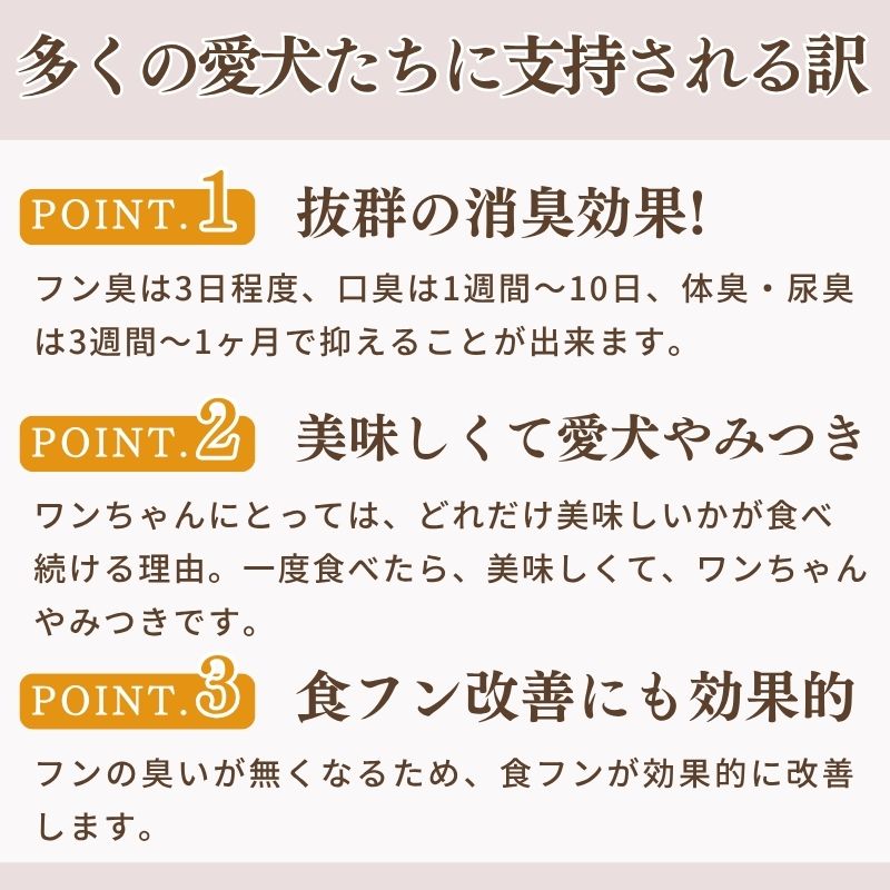 いろんなところにひそんでいる、愛犬のいや~なニオイ。そんなときにもおすすめの愛犬用おやつです。