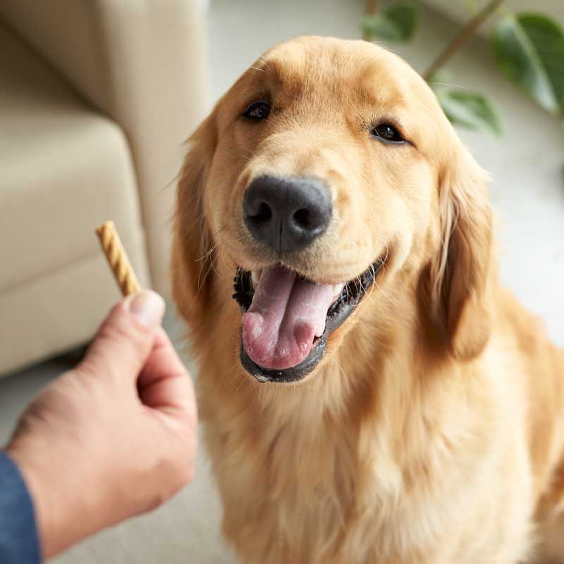 小型犬にも与えやすいショートスティックです。