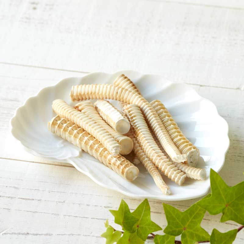 サメの脊椎骨の主要構成体である「椎体」と呼ばれる円筒形の部分に、ゼラチン質の多い付属構成体である神経弓門と呼ばれる部分をそのまま付着させた状態で乾燥しています。