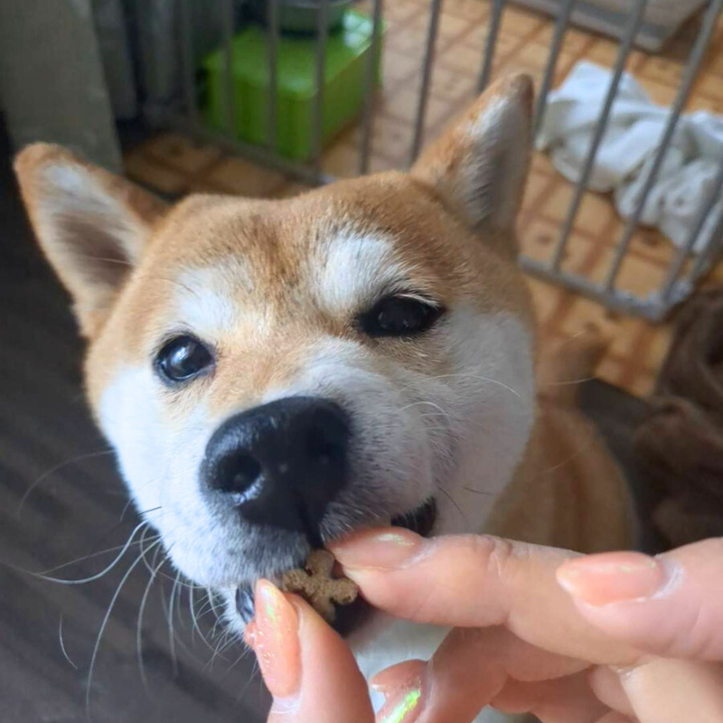 ・犬の食べ方や性格によっては、のどに詰まらせることがありますので、飲み込まないように、必要に応じて適度な大きさにして与えてください。