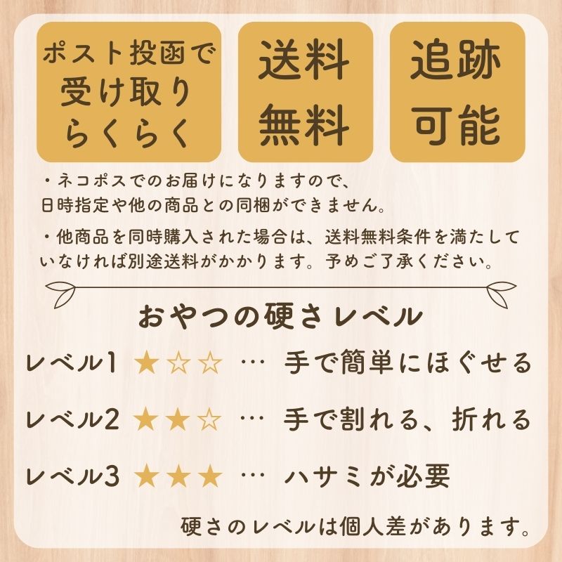・原材料 小麦粉、鶏ささみ、馬鈴薯澱粉、山羊ミルク、砂糖、DHA含有精製魚油、グリセリン、プロピレングリコール、炭酸カルシウム、ソルビトール、保存料(ソルビン酸K)