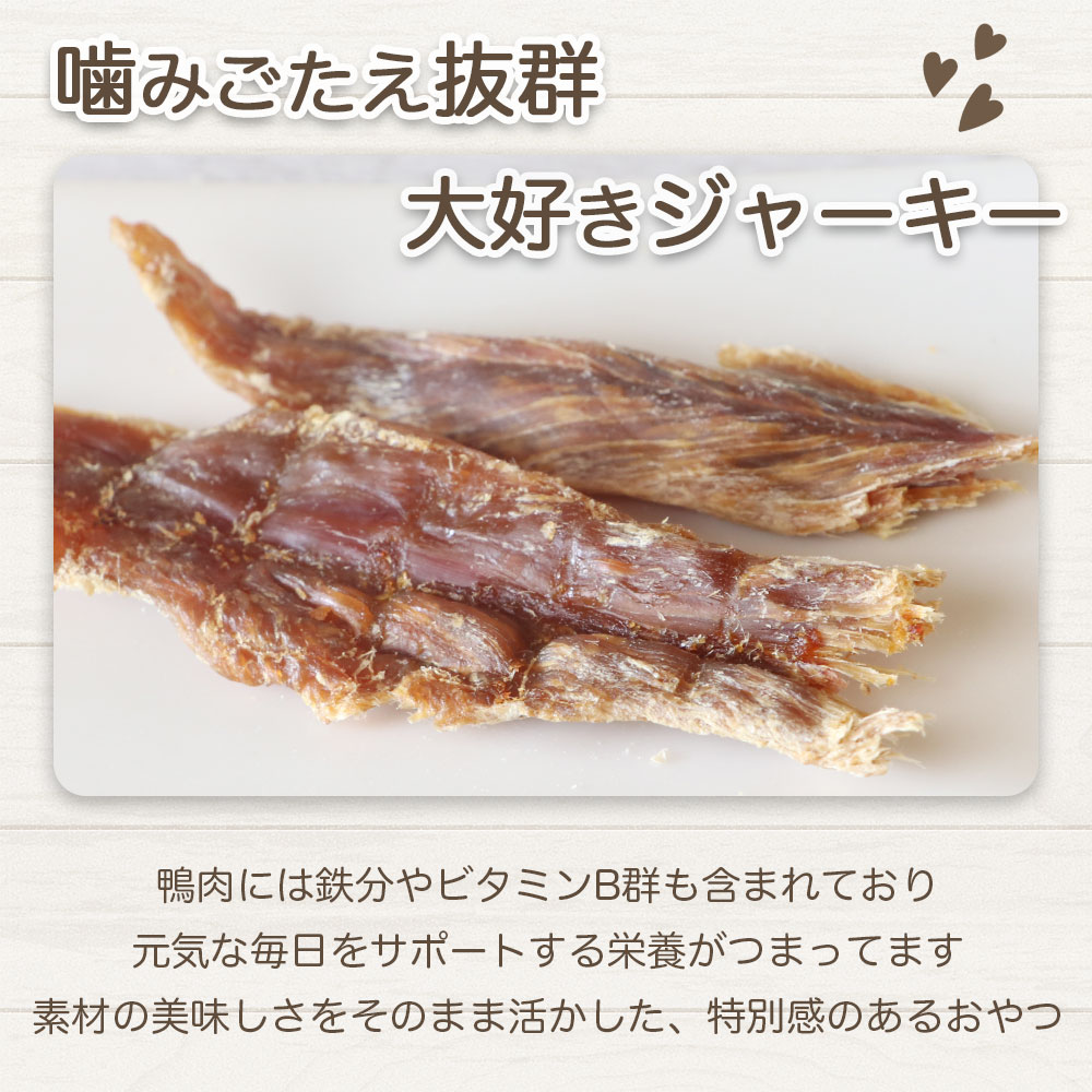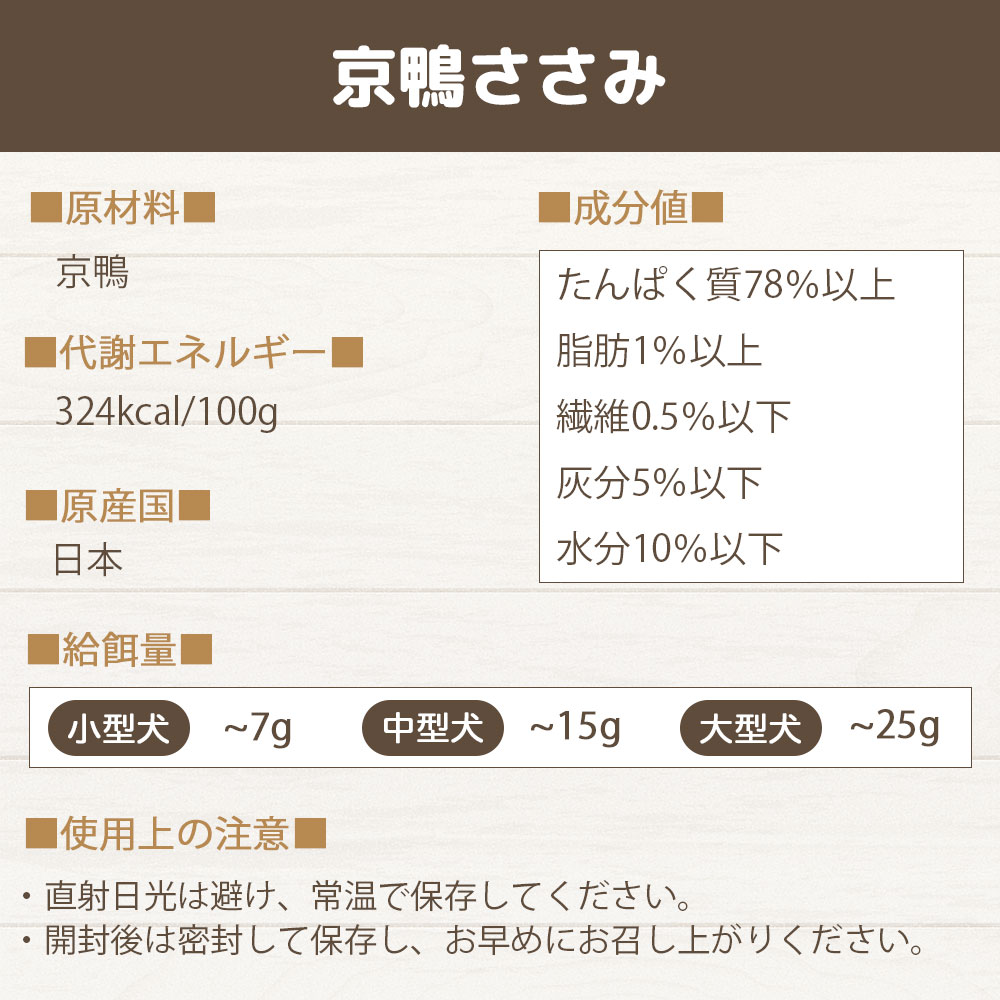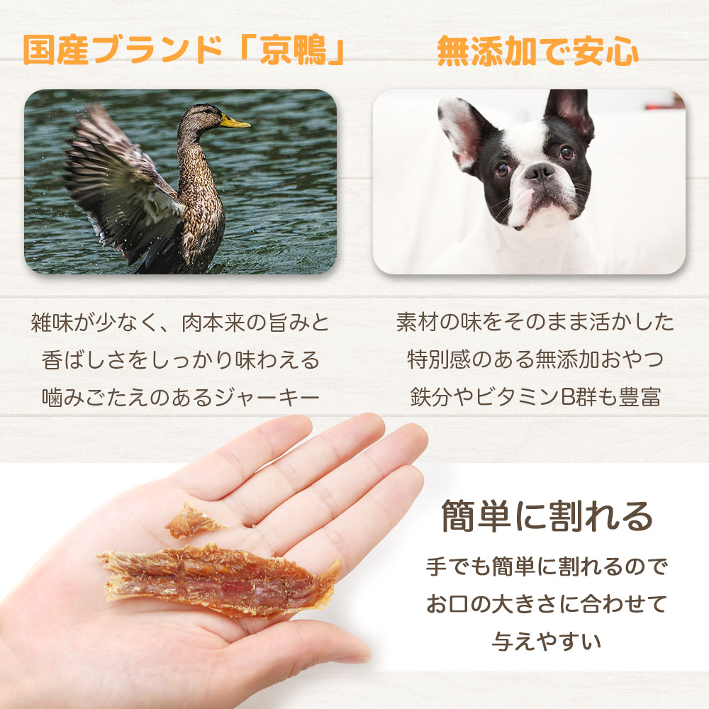世界最高の肉質といわれている京鴨を乾燥し、噛み応えのあるスティック状にしました。