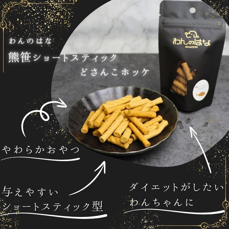 熊笹は、標高1000メートル以上の大地に生息する、60年以上枯れないといわれているイネ科の植物です。 熊は、冬眠生活を過ごすための食事をしたあとに、熊笹を食べますが、冬眠中に腸内が異常発酵し、血液が汚れ、体内に毒素が回らないようにしているのです。 「笹団子」「富山のマス寿司」などに熊笹が利用されているのは笹の葉が持つ抗菌作用を利用したものと考えられます。 わんのはな熊笹ショートスティックシリーズには、熊笹のエキスを配合し愛犬愛猫の健康をサポートします。